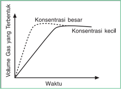 Semakin besar konsentrasi --> semakin banyak jumlah partikel pereaksi --> tumbukan efektif semakin banyak terjadi --> reaksi berlangsung semakin cepat.