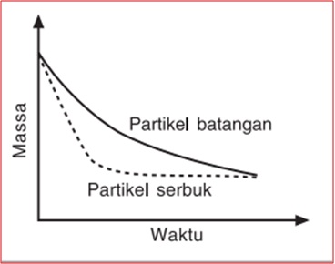 Luas permukaan, semakin luas permukaan semakin cepat reaksi terjadi.