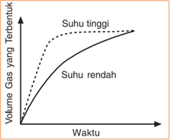 Suhu, semakin tinggi suhu semakin cepat reaksi terjadi karena energi kinetiknya bertambah melebihi energi aktivasi .