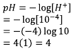 [H+] = 10-4, dengan rumus yang pertama untuk mencari pH