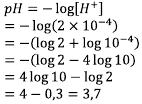 Tentukan pH dari suatu larutan yang memiliki konsentrasi ion H+ sebesar 2 x 10-4 M. Gunakan nilai log 2 = 0,3