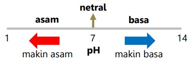 - Keasaman berbanding terbalik dengan nilai pH, kebasaan berbanding lurus dengan nilai pH.