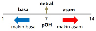 - Larutan dengan pOH < 7 bersifat basa, pOH = 7 bersifat netral, dengan pOH > 7 bersifat asam.