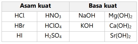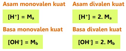 Nilai konsentrasi H+ dan OH- asam-basa kuat:
