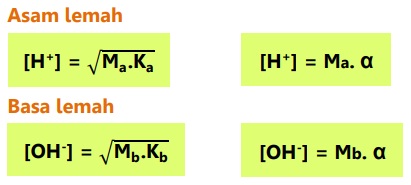 Nilai konsentrasi H+ dan OH- asam-basa lemah: