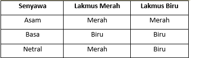 Berikut hasil uji kertas lakmus terhadap senyawa asam, basa dan garam.