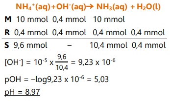 Tentukan pH larutan apabila 400 ml larutan NH4OH 0,5 M dicampur dengan 100 ml larutan NH4Cl 0,5 M! (Kb NH4OH = 1,8 x 10-5)
