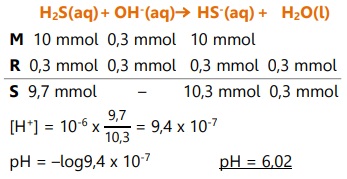 100 mL larutan penyangga mengandung 10 mmol H2S dan HS-. (Ka H2S = 1 x 10-6). Tentukan pH larutan: