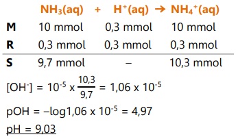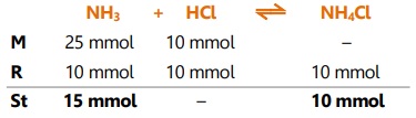 Larutan penyangga dari 250 mL NH3 0,1 M dan 100 mL HCl 0,1 M,