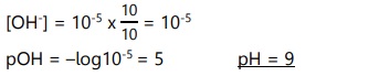 100 mL larutan penyangga mengandung NH3 dan NH4Cl yang keduanya 0,1 M. (Kb NH3 = 10-5). Tentukan pH larutan: