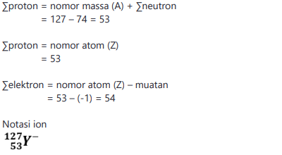 - Saat atom berubah menjadi ion, yang mengalami perubahan hanya jumlah elektronnya sedangkan jumlah proton dan neutronnya tetap.