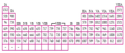 Energi ionisasi dalam sistem periodik unsur digambarkan dalam gambar di bawah ini: