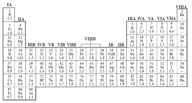 Keelektronegatifan unsur dalam sistem periodik unsur dapat dilihat dalam gambar berikut: