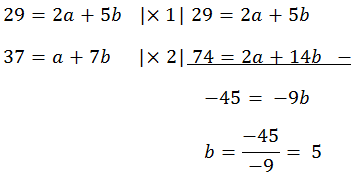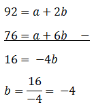 Menggunakan eliminasi dan substitusi pada persamaan (1) dan (2) untuk mencari nilai a dan b