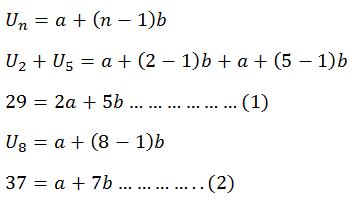 Jumlah suku kedua dan kelima barisan artimatika adalah 29. Jika suku ke 8 = 37, maka suku ke 21 adalah ....