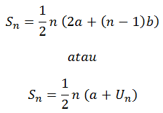Rumus untuk menentukan jumlah suku ke-n pada deret aritmetika, yaitu: