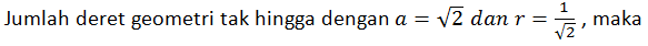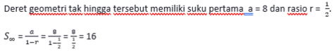 Rumus untuk menentukan jumlah deret geometri tak hingga, yaitu: