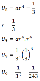 Barisan geometri dengan suku ke-5 adalah 1/3 dan rasio = 1/3, maka suku ke-9 barisan geometri tersebut adalah ….