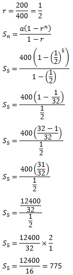 Pada deret geometri 400+200+100+ ... + ... . Berapa jumlah 5 suku pertama deret geometri tersebut ....