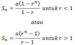 Rumus yang digunakan untuk menentukan jumlah n suku dari deret geometri, yaitu:
