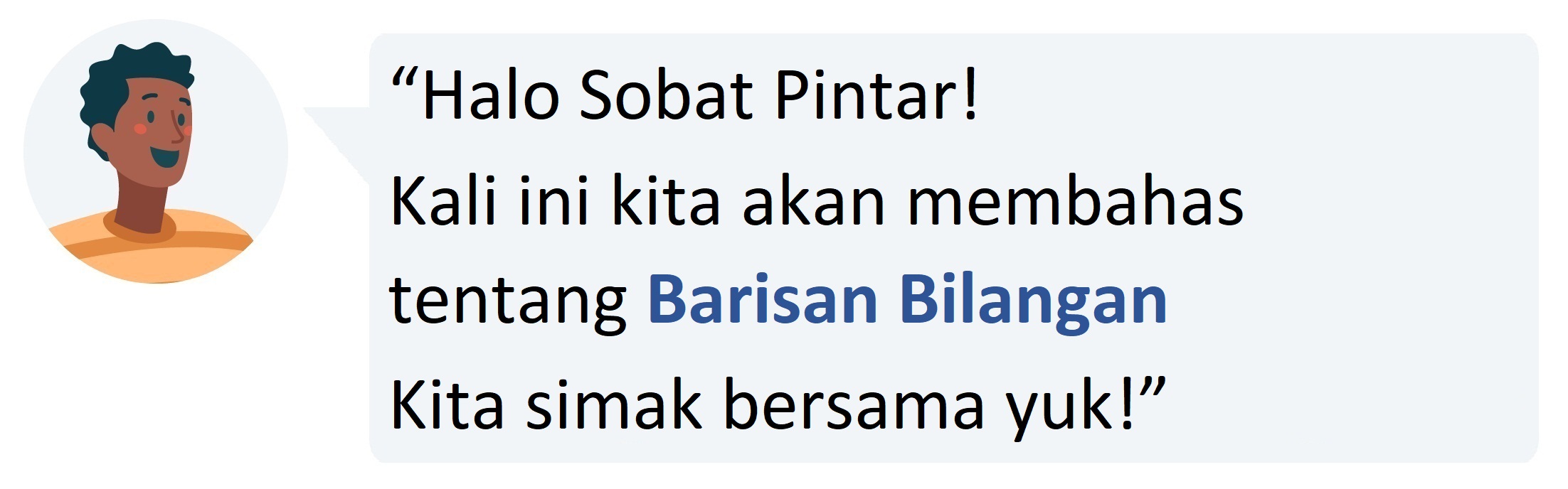 Barisan bilangan yaitu bilangan-bilangan yang diurutkan dengan aturan tertentu. Barisan bilangan terdiri atas beberapa suku yang dipisahkan dengan tanda koma (,).