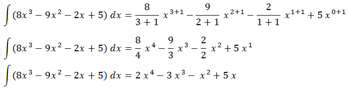 2x4 - 3x3 - x2 + 5x + C