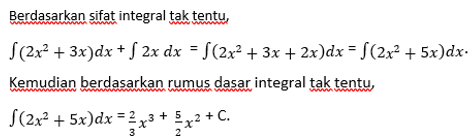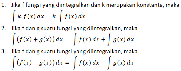 Selain rumus dasar untuk menentukan integral suatu fungsi, kita dapat juga menggunakan sifat-sifat integral berikut: