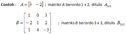 Matriks adalah susunan bilangan-bilangan berbentuk persegi panjang yang diatur dalam baris (jajaran) dan kolom (lajur) dengan dibatasi oleh kurung biasa “()” atau kurung siku “[]”.