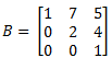 - Matriks segitiga atas, yaitu matriks persegi yang semua elemen di bawah diagonal utamanya adalah nol. Contoh :