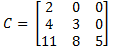 - Matriks segitiga bawah, yaitu matriks persegi yang semua elemen di atas diagonal utamanya adalah nol. Contoh :