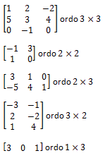 Ordo matriks adalah banyaknya elemen baris dan banyaknya elemen kolom dari suatu matriks. Jika sebuah matriks memiliki m baris dan n kolom, maka matriks tersebut berordo m x n dituliskan Amxn.