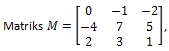 - Matriks kolom, yaitu matriks yang hanya memiliki satu kolom atau berordo m x 1. Contoh :