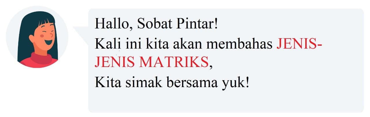 Ternyata matriks tidak hanya satu jenis loh, Sobat. Matriks dapat dikelompokkan menjadi beberapa jenis sebagai berikut