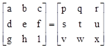 Berdasarkan kesamaan 2 matriks berordo 3x3 kita dapat pernyataan yang benar adalah b = q, e = t, h = w