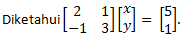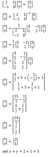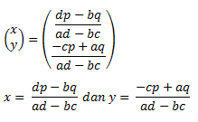 Untuk menentukan x dan y menggunakan invers matriks dapat dicari dengan rumus: