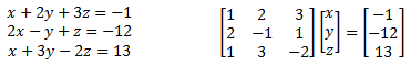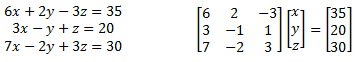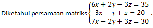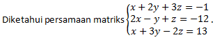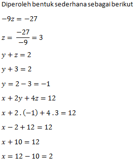Untuk menentukan nilai x,y,z dapat menggunakan determinan