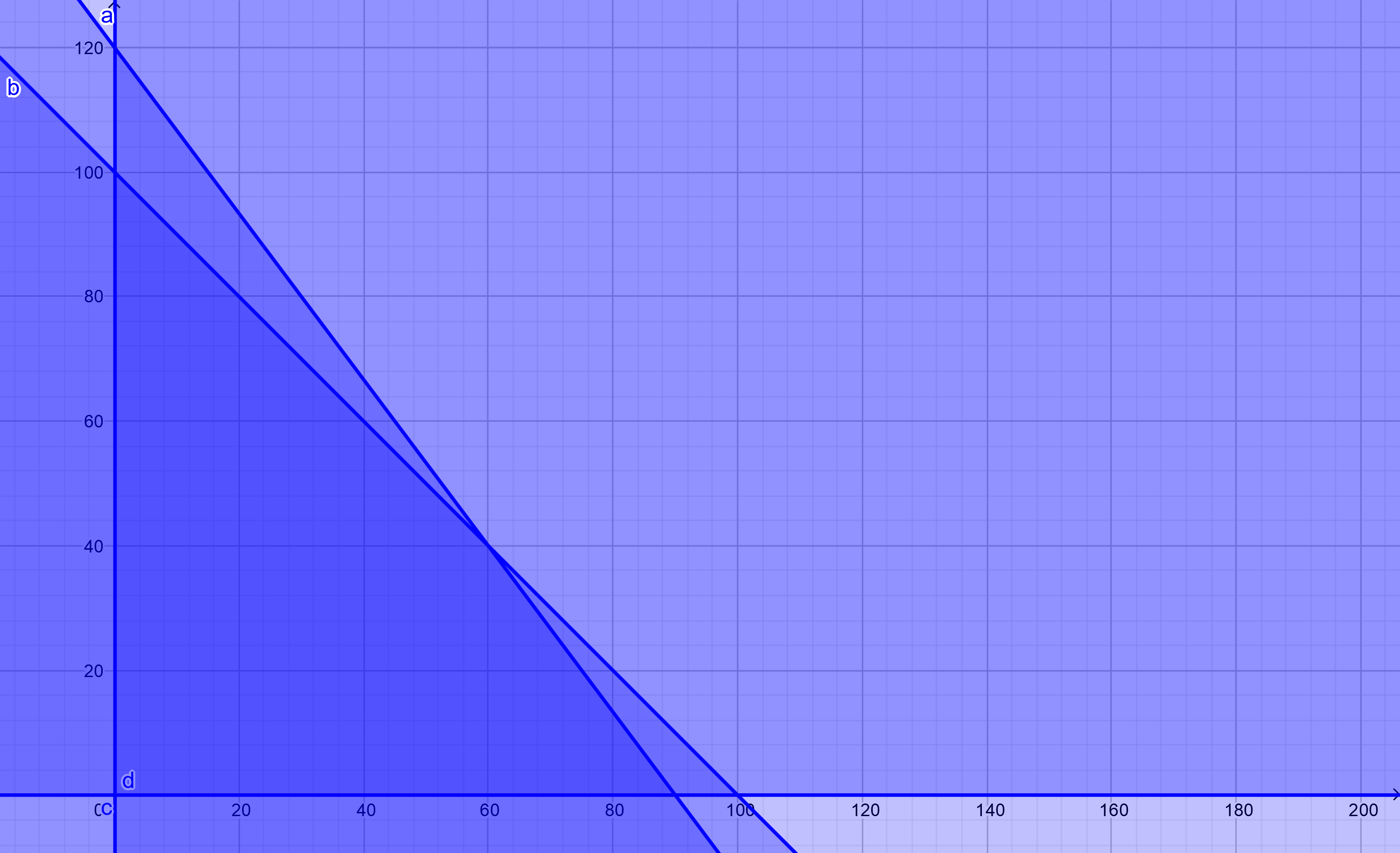 Titik Penyelesaian : (90,0); (0,100), dan (60,40)