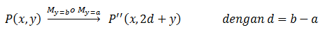 Jika diketahui titik P(x,y) dicerminkan terhadap garis y = a dengan hasil P’(x’,y’), kemudian dicerminkan lagi terhadap garis y = b dengan hasil P’’(x’’,y’’) maka komposisi nya dapat dinyatakan: