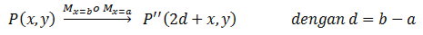 Jika diketahui titik P(x,y) dicerminkan terhadap garis x = a dengan hasil P’(x’,y’), kemudian dicerminkan lagi terhadap garis x = b dengan hasil P’’(x’’,y’’) maka komposisi nya dapat dinyatakan: