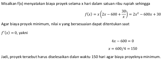 - Membandingkan nilai fungsi pada langkah 1 dan 2. Nilai yang terbesar adalah nilai maksimum, sedangkan nilai terkecil adalah nilai minimum.