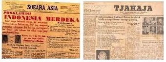 Surat kabar yang pertama kali menyiarkan berita tentang proklamasi kemerdekaan Indonesia adalah Tjahaja yang terbit di Bandung dan Soeara Asia yang terbit di Surabaya. Penyambutan berita Proklamasi Kemerdekaan Indonesia oleh seluruh rakyat dibuktikan dengan pelucutan senjata pasukan Jepang, pengambilalihan pucuk pimpinan, serta semangat terus berjuang untuk merebut dan mempertahankan kemerdekaan Indonesia.