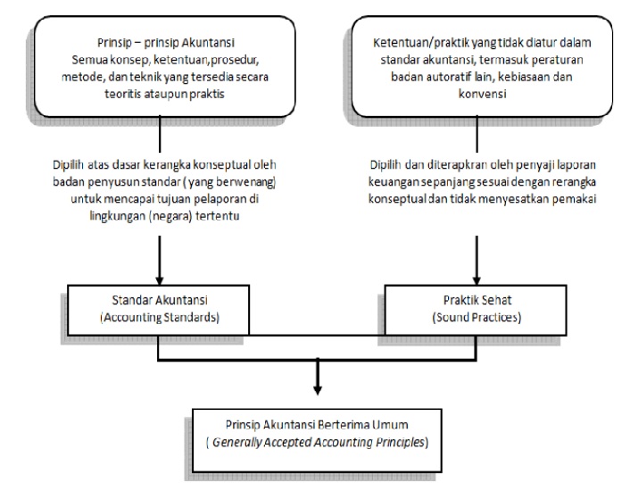 Standar akuntansi yaitu prinsip-prinsip akuntansi yang telah dipilih dan dituangkan dalam bentuk ketentuan resmi sebagai acuan utama praktik akuntansi di lingkungan (negara) tertentu. Untuk lebih jelasnya hubungan antara Prinsip Akuntansi, Standar Akuntansi, dan Prinsip Akuntansi Berterima Umum (PABU), yuk, perhatikan bagan berikut ini!