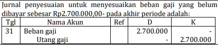 Beban gaji Rp2.700.000,00 Utang gaji Rp2.700.000,00