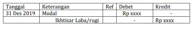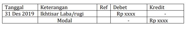 Maka modal akan debet dan ikhtisar laba rugi kredit