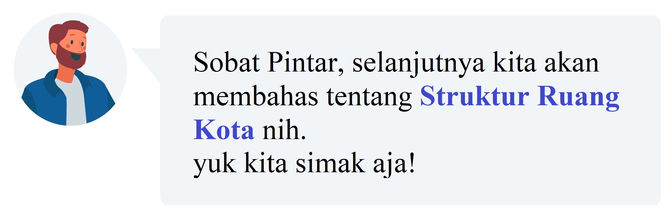 Struktur ruang kota berbeda dengan desa. Struktur ruang kota keadaannya lebih kompleks dan teratur. Struktur ruang kota mengatur pemanfaatan ruang atau lahan untuk keperluan tertentu sehingga tidak terjadi pemanfaatan yang tumpang tindih.