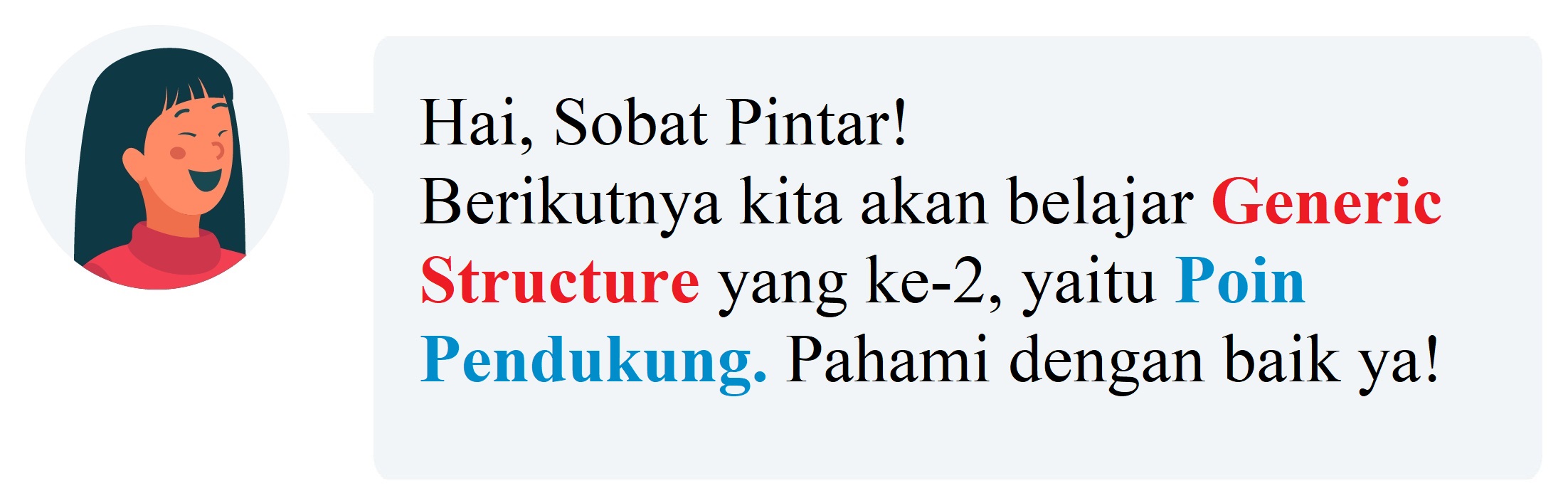 Dalam contoh diatas, poin pendukung berada pada paragraf 2 atau pada bagian yang diberi warna biru.