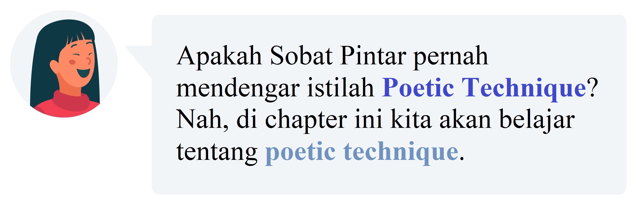Teknik berpuisi yang menggunakan as atau like untuk membandingkan dua hal yang berbeda adalah simile.