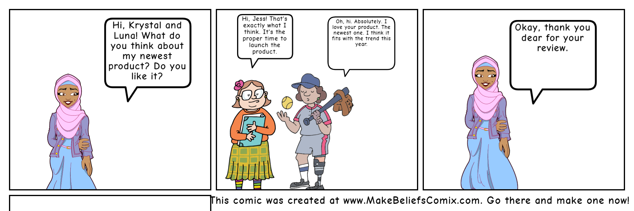 Jessica : Hi, Krystal and Luna! What do you think about my newest product? Do you like it?