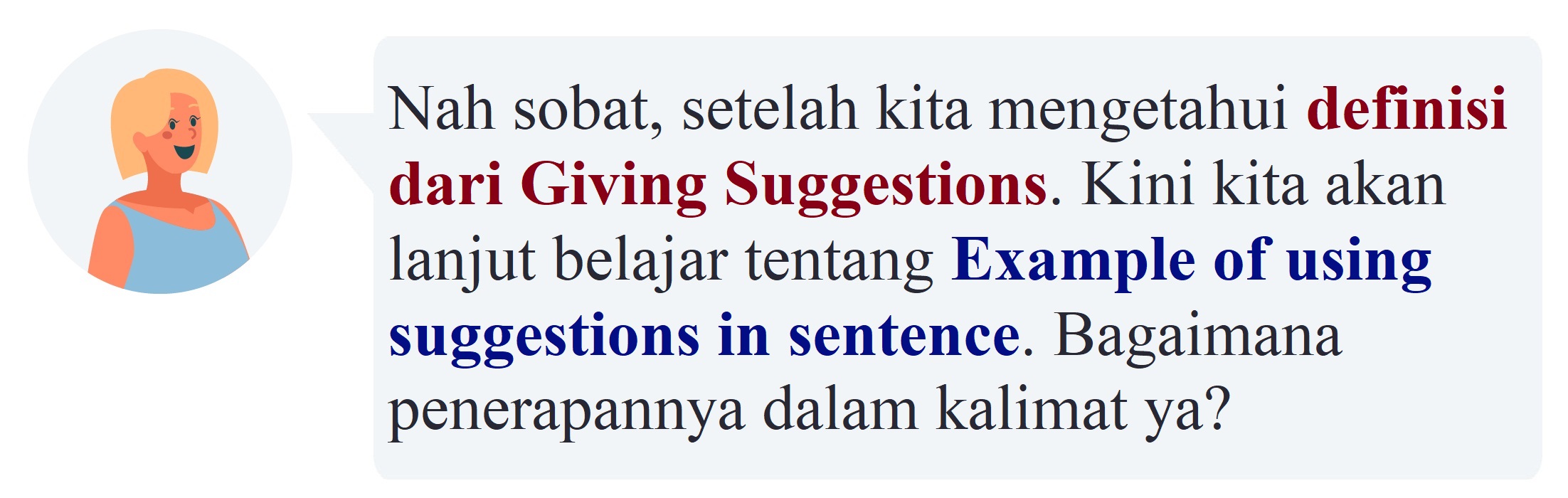 Dalam memberi saran (giving suggestions), beberapa kata yang dapat digunakan adalah sebagai berikut: