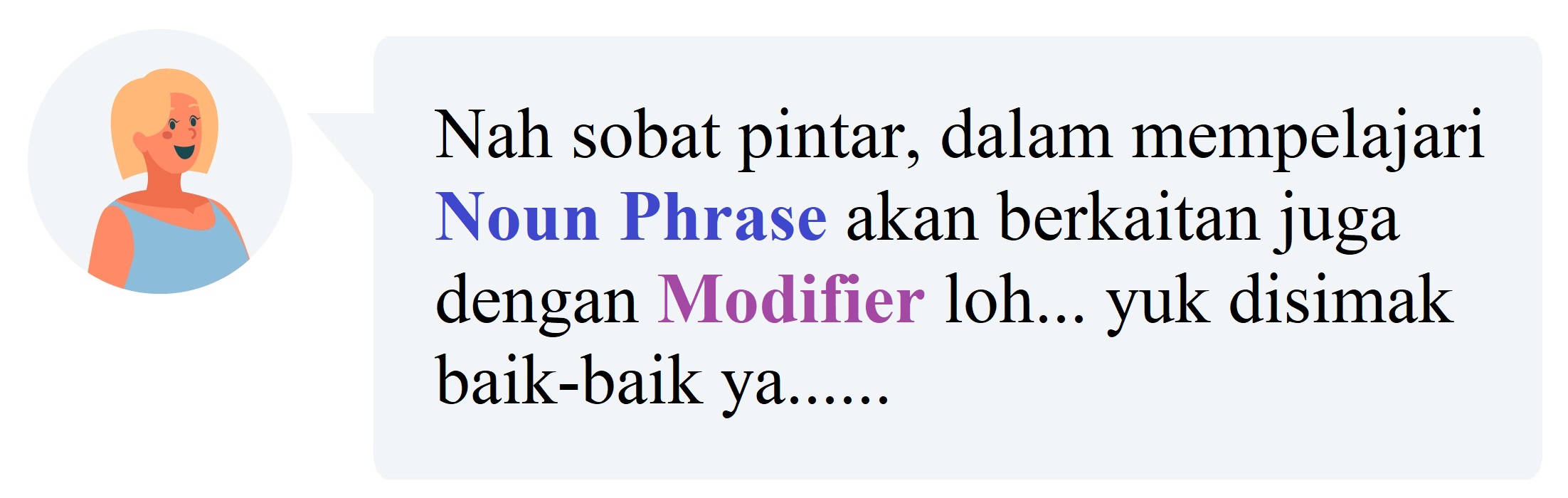 Modifier adalah kata, frasa, maupun klausa yang digunakan untuk menjelaskan suatu noun. Terdapat dua jenis modifier, yaitu pre modifier dan post modifier. Premodifier adalah modifier yang terletak sebelum noun, sedangkan post modifier adalah modifier yang terletak sesudah noun.